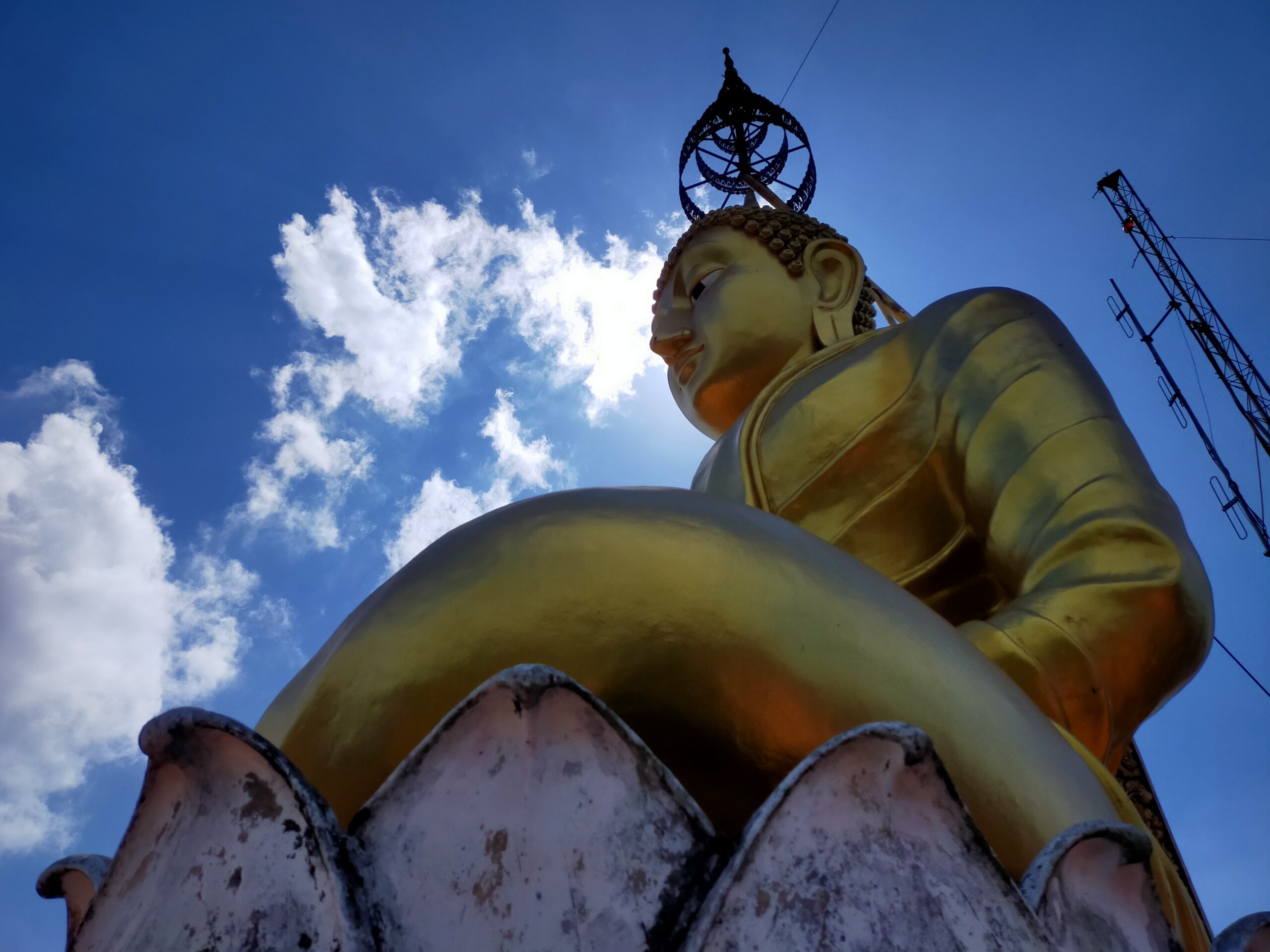 ワットタムスア山頂の黄金仏像は、1970年代に建立されたもので、資材や人力を使って険しい山道を越えて建設されたとされています。