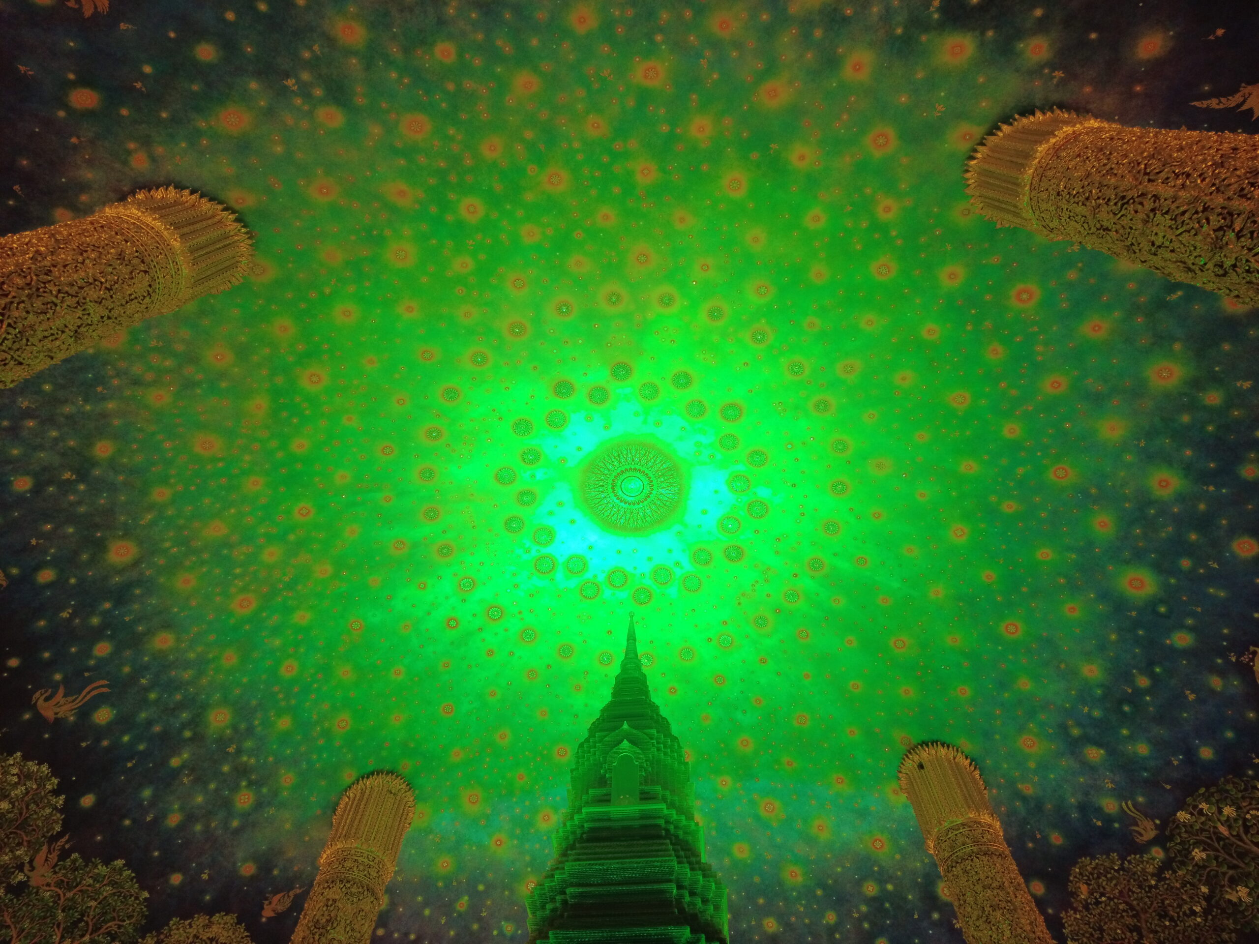 これはバンコクにある有名な寺院の中にある天井画(天井壁画)です。